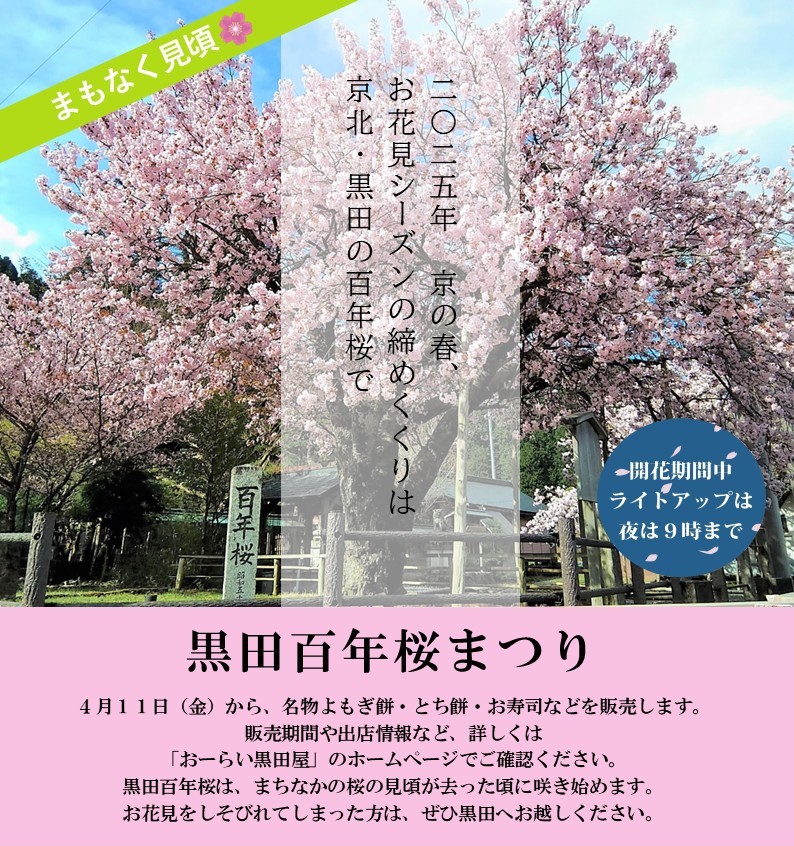黒田百年桜の開花状況は こちら からご確認いただけます。