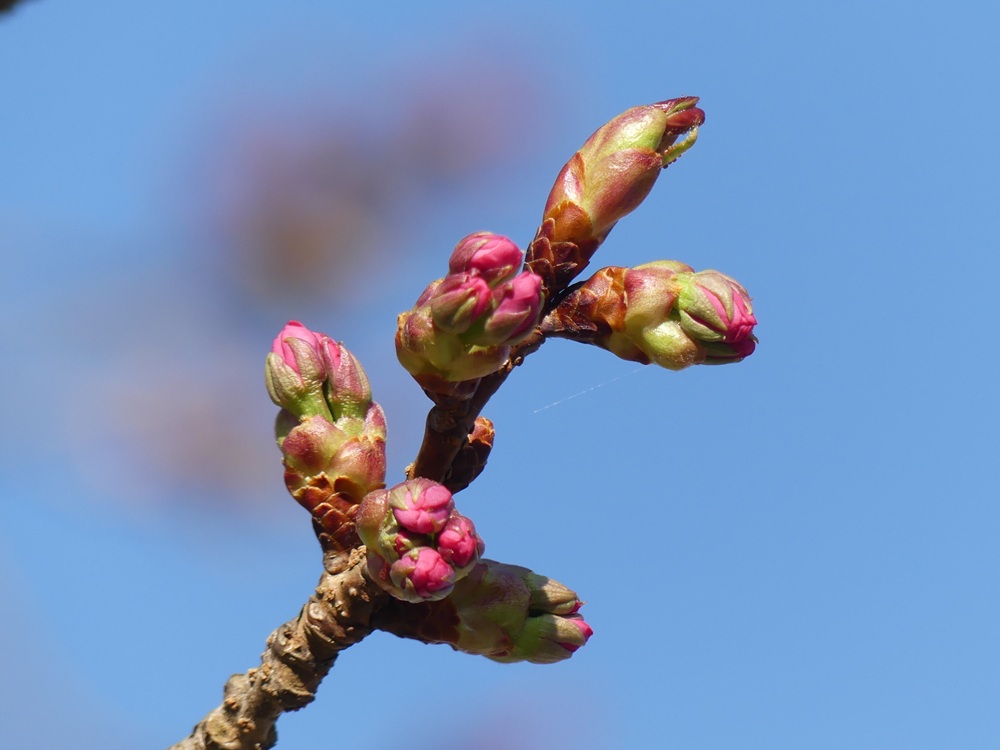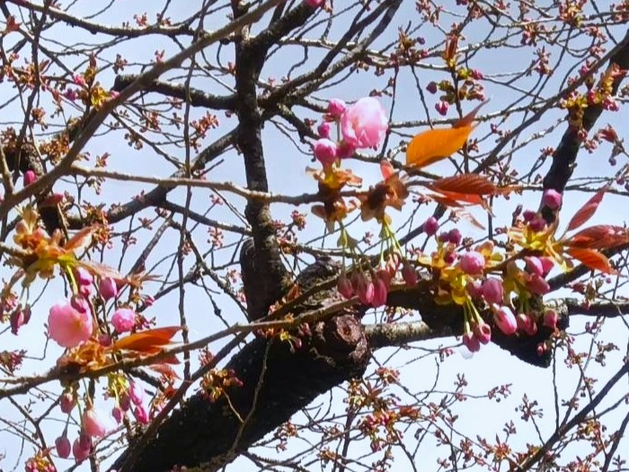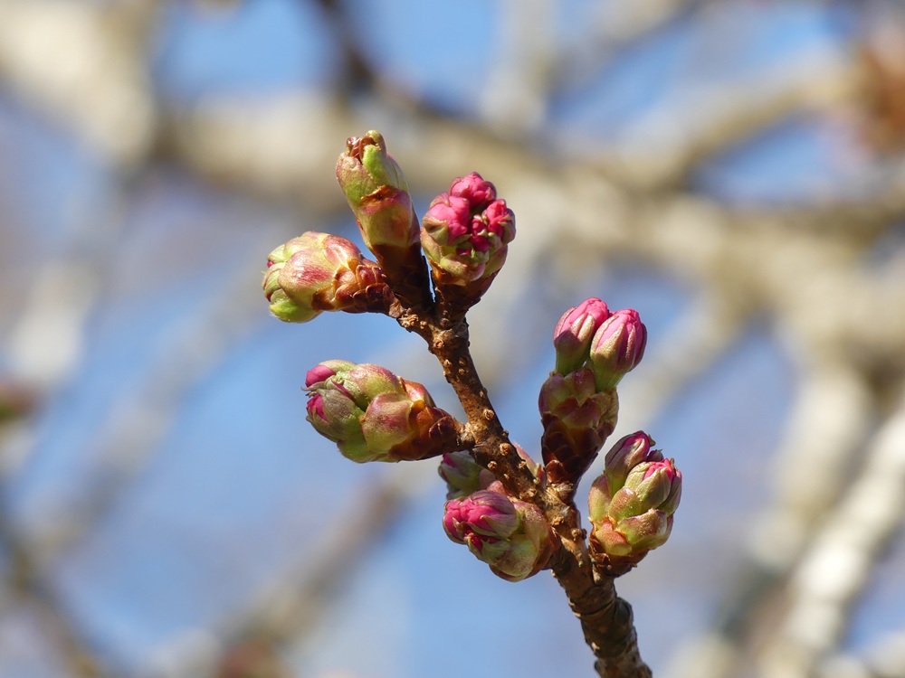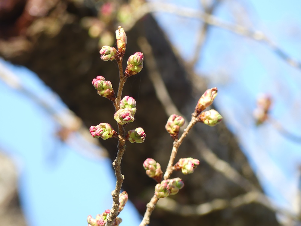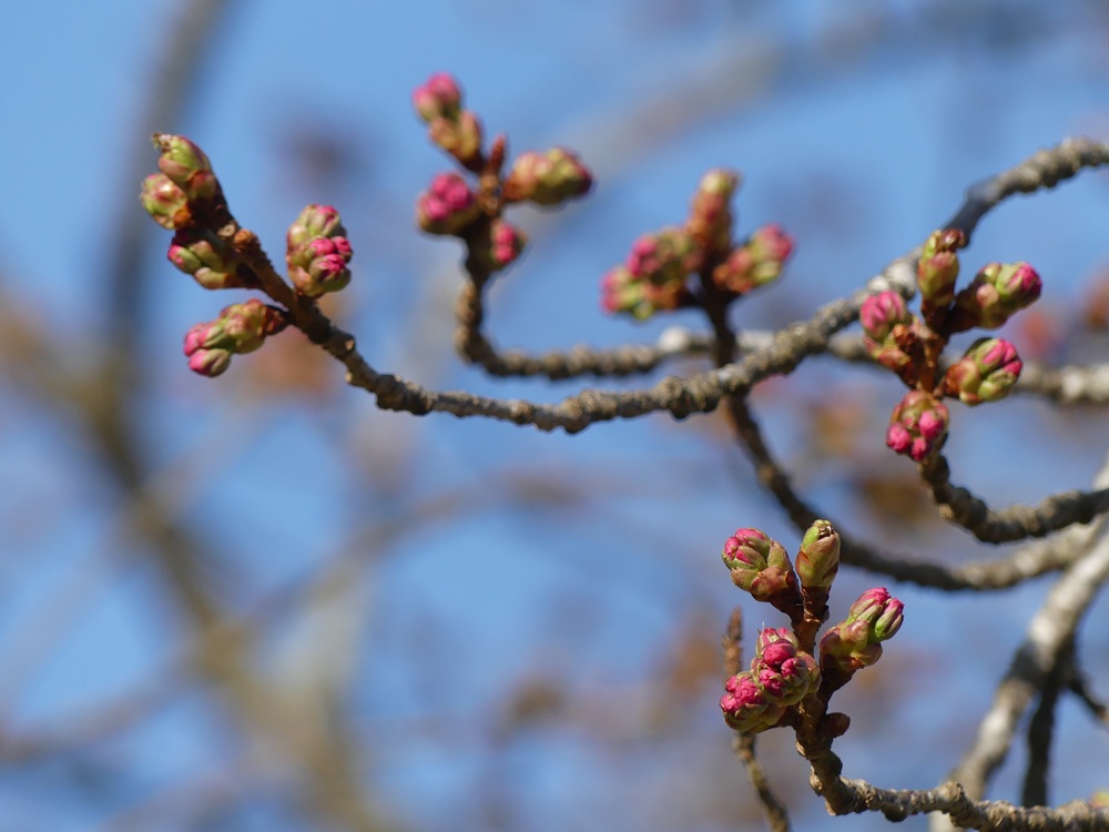 2025年4月12日 開花状況:つぼみ膨らむ 天気:晴れきょうの日中の気温は22度まで上がる予報。 つぼみの膨らみはきょう一日で最終段階まで進みそう。 が、、、お天気はゆっくりと下り坂。 明日の日曜日は、低気圧の通過で終日雨に見舞われ、最高気温も13度どまり。 黒田百年桜の開花は、14日(月)までおあずけになりそうです。