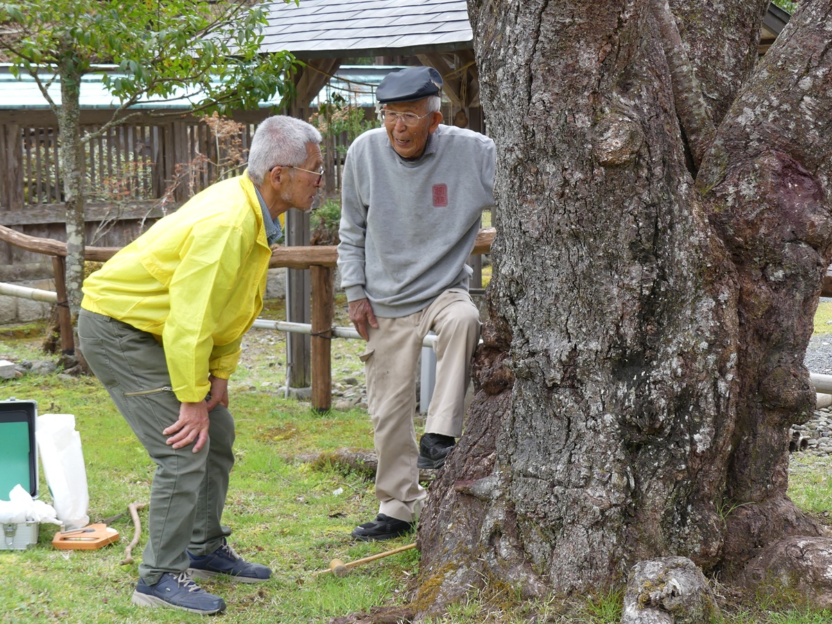 きょうは、16代目佐野藤右衛門さんがやってきて、ことしの百年桜の健康状態を入念に点検していました。