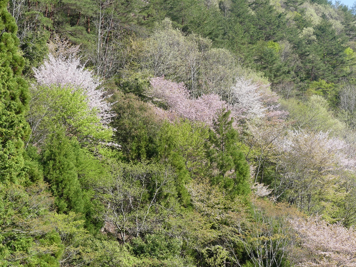 桜の季節の締めくくりは、周囲の山々のヤマザクラです。